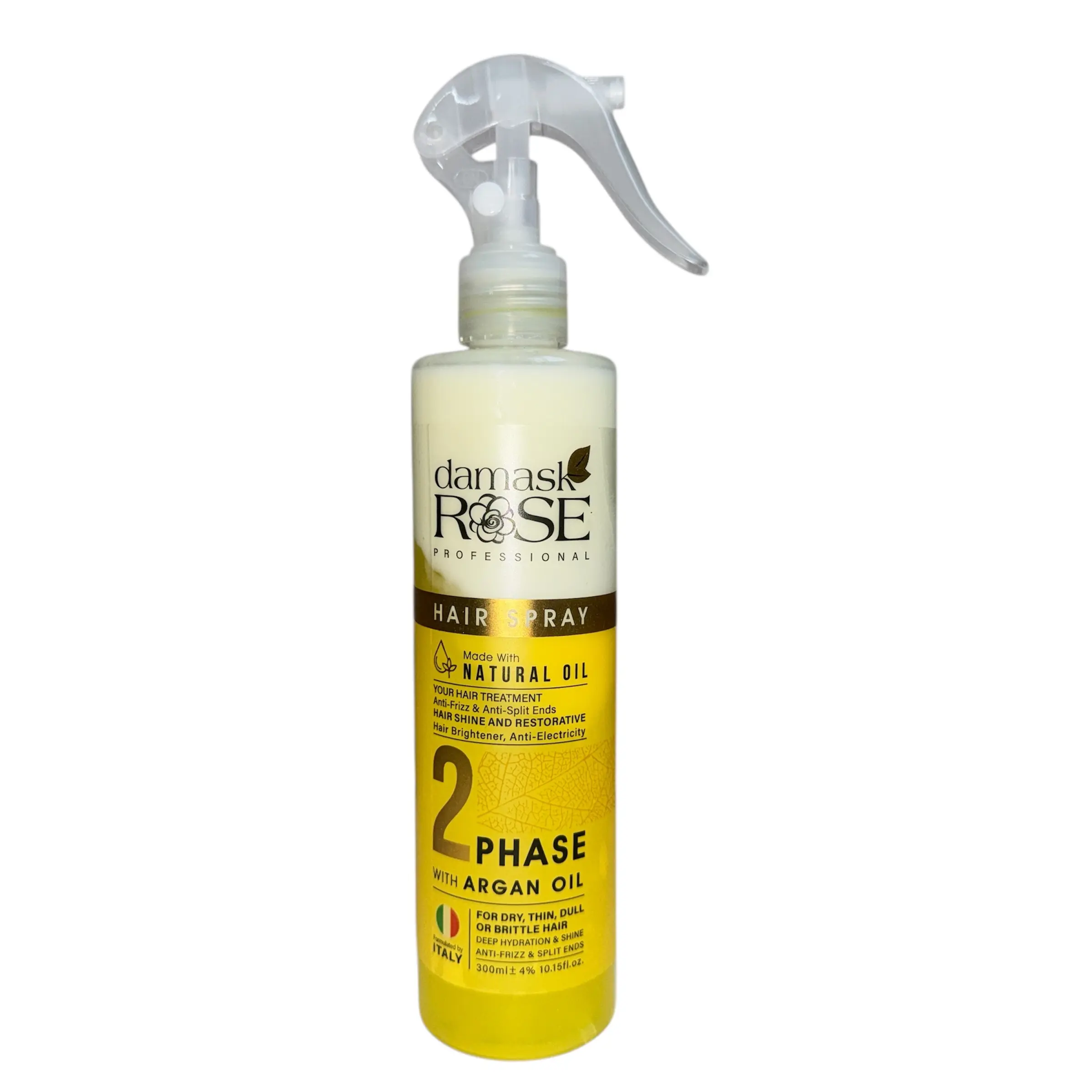 اسپری دو فاز مو داماسک رز حاوی روغن آرگان با حجم ۳۰۰ میلیلیتر، یک محصول مراقبتی حرفهای برای تقویت، بازسازی و زیباسازی موهاست. این اسپری با فرمول دو فاز، بدون ایجاد سنگینی، موها را نرم، براق و خوشحالت میکند و نقش مؤثری در کاهش وز، الکتریسیته ساکن و شکستگی مو دارد. وجود کراتین و پروتئین به بازسازی ساختار مو کمک کرده و ترکیبی از روغنهای ارزشمند آرگان، جوجوبا، ماکادمیا و بادام، تغذیه عمیق موهای خشک، آسیبدیده و نازک را فراهم میکند. این محصول ساخت ایران و تحت لیسانس ایتالیا است.