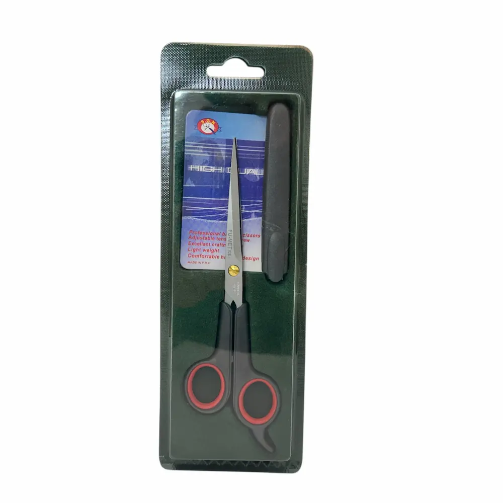 قیچی اصلاح موی سر غلاف‌دار فومت با تیغه استیل ضدزنگ، برش نرم و دقیق، مناسب کوتاهی مو و ریش.