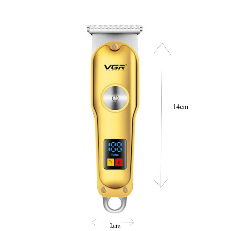 ماشین اصلاح VGR V-290 شارژی، صفرزن و خط‌زن با تیغه استیل ضدزنگ، تنظیم سرعت و نمایشگر دیجیتال، مناسب اصلاح حرفه‌ای.
