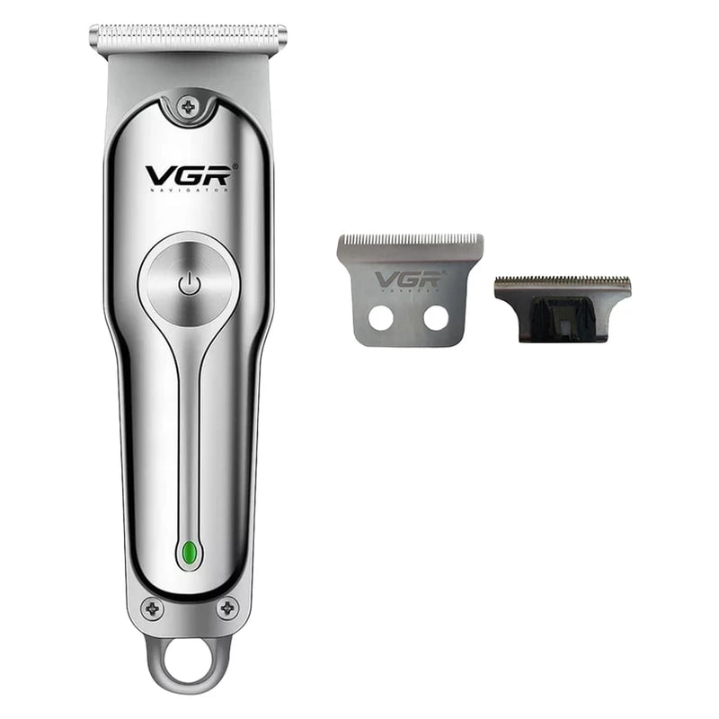 ماشین اصلاح VGR V-071 با تیغه استیل ضد زنگ، شارژی، قابلیت تنظیم سرعت و استفاده خشک و مرطوب، مناسب اصلاح حرفه‌ای سر و صورت.
